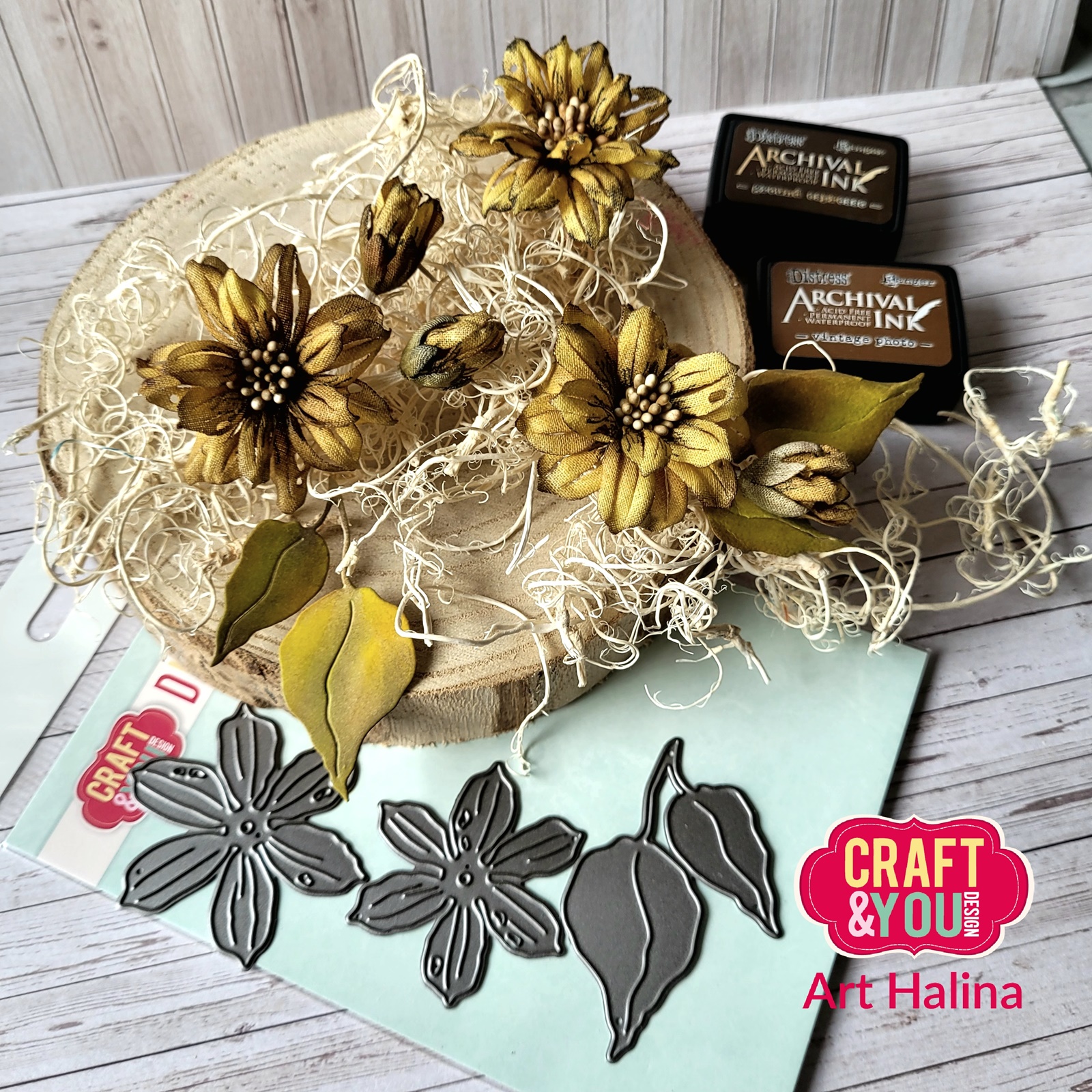 Today we present to you Halina Jatczak, who started her adventure with our Design Team with a live meeting last Sunday. She showed us how to make beautiful flowers from foamiran and fabrics from the Vintage Flower die.