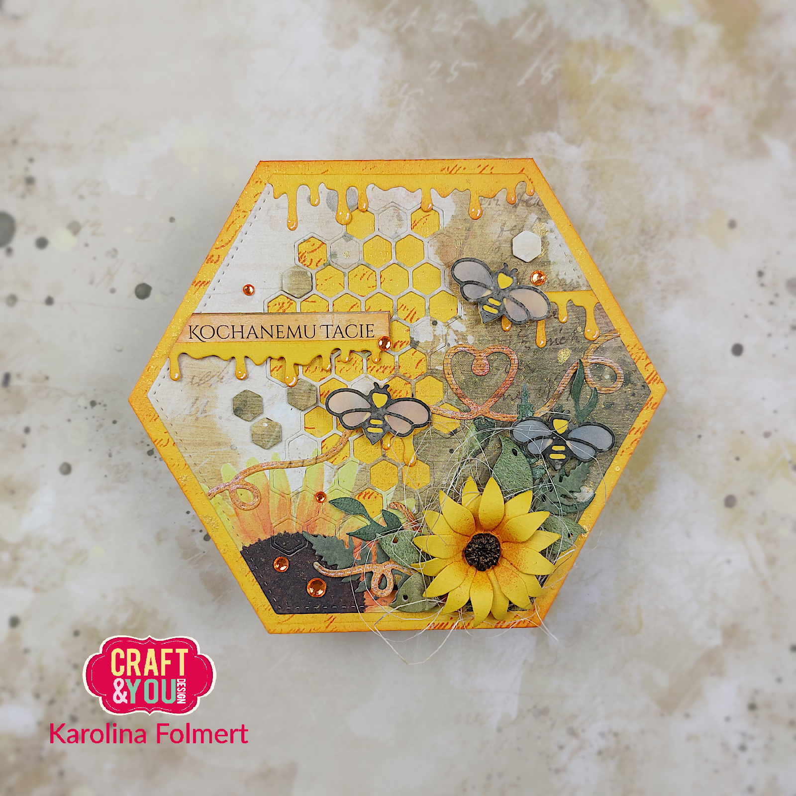 Natalia Kuzak created her own background on white paper using inks and our stamps. Using dies, she created a beautiful mixmedia card decorated with large flowers, which she also made herself.